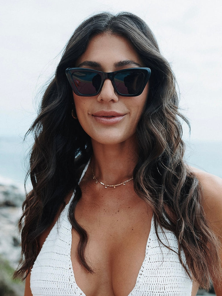 These vintage-inspired frames with bold lines feature polarized lenses and UV protection for a stylish, sun-ready look.