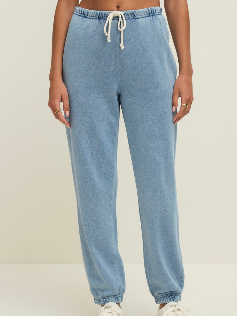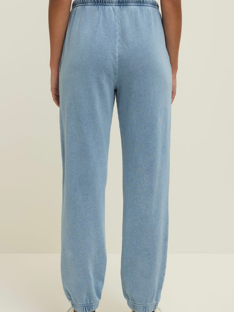This jogger blends the look of denim with the softness of French terry for all-day wearability. The drawstring waist, side pockets, and tapered leg create a flattering, easygoing silhouette that goes wherever you do.