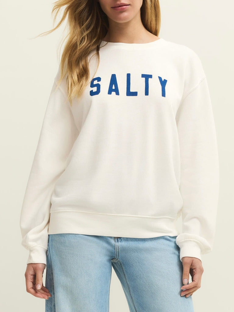 Easy, effortless, and just the right amount of attitude. Our Salty Crewneck Sweatshirt is made from 100% soft cotton, giving you that perfectly broken-in feel from the very first wear. Designed with a relaxed fit and classic crew neckline, it’s the kind of layer you’ll reach for on cool mornings, beach walks, and cozy everyday moments.