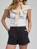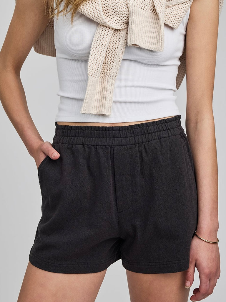 The Cleo short is made of a textured cotton twill that has been specially washed for a soft feel. Features include slash pockets and an elasticated waistband. Complete the look with the Inez Tank.